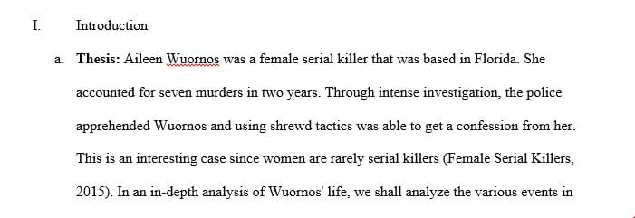 Each topic or step of the outline should include two to three sentences regarding what will be discussed in that section, focusing on the particular psychological factors that explains the criminal behaviors