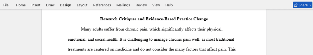 Use the “Research Critiques and Evidence-Based Practice Proposal Guidelines” document to organize your essay. Questions under each heading should be addressed in the structure of a formal paper.