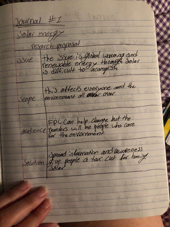 Journal entry #1: choose a local issue that interests you and create a chart for the research proposal (issue, scope, audience, and possible proposed solution)