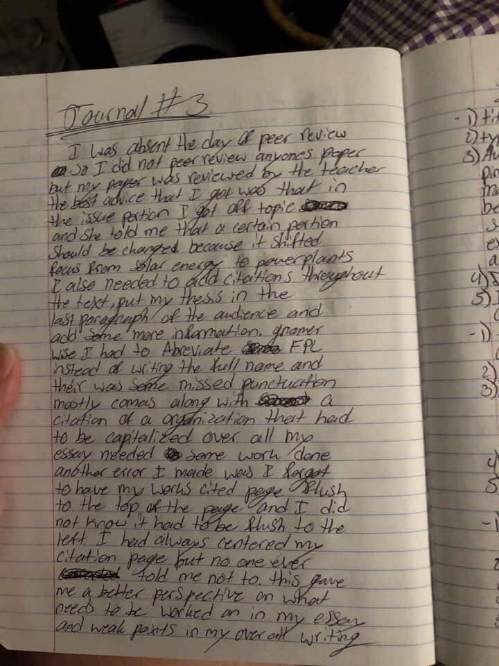 Journal entry #3: What was the most useful piece of advice that you received during the peer review? What was the most helpful piece of advice that you gave your partner? How will you edit your paper? What changes will you make?