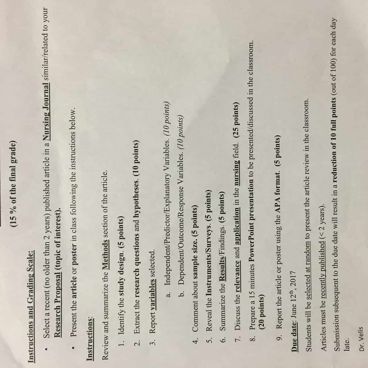 Choose an article from a Nursing Journal and make all the critics as indicated in the picture