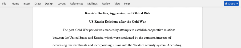 1. The video underscored the Significance of open communication and mutual respect to peace. When looking at Secretary Perry’s speech in totality, and based on your additional research, what were the key steps taken to build relations with Russia post-Cold-War, and what caused the decrease in relations since? Pick the leading indicators of decreasing US/Russian relations and discuss what indicators of a diminishing relationship intelligence should have noted.