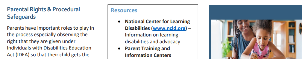 Create a 250-500 word brochure for families of students who may have disabilities. In your brochure, include the following