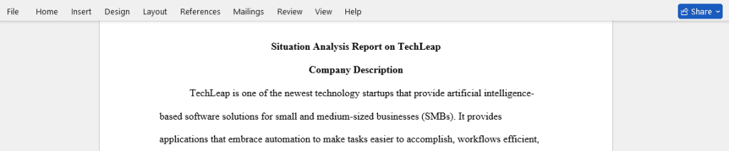 - Your situation analysis should include the following components: