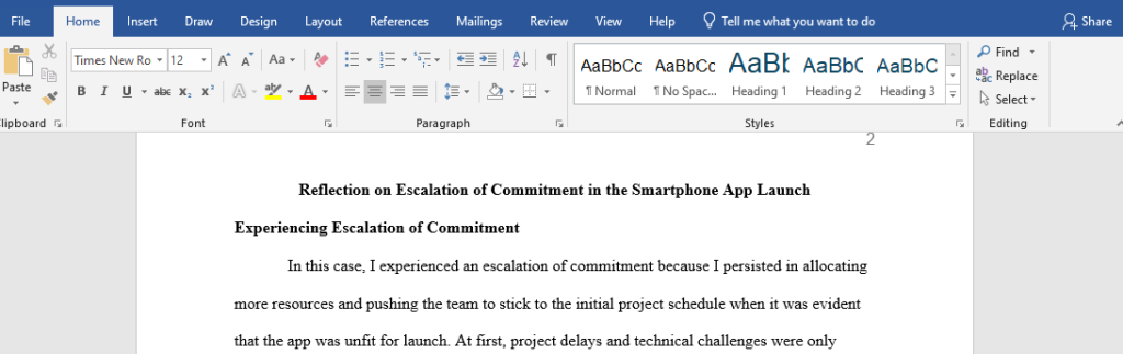 Reflection: As you reflect on the situation, you realize that the escalation of commitment caused you to persist with a failing course of action despite clear signs that it was no longer viable. You recognize that continuing to push forward, rather than pivoting or reevaluating the situation earlier, led to a poor outcome for the company and for your reputation as a leader.