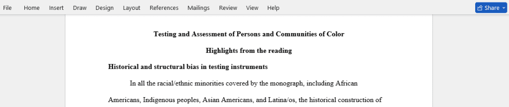 What are 4-6 highlights from your reading of the Testing and Assessment of Persons and Communities of Color? How does this impact your understanding of the measures that have already been reviewed in this class?