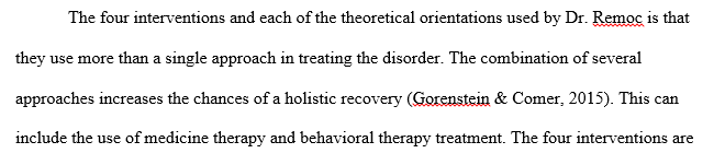 Explain the connection between each theoretical orientation used by Dr. Remoc and the four interventions utilized in the case.