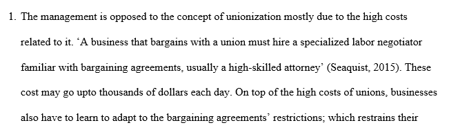 1. What are some reasons management opposes unionization? Do you agree or disagree with these reasons? Why or why not?