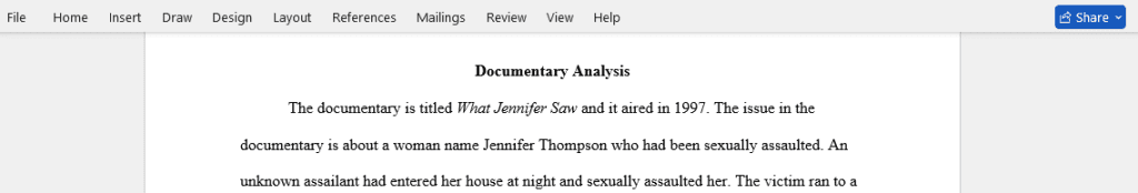 Assignment Instructions: Answer the following based on doc. video: What Jennifer Saw