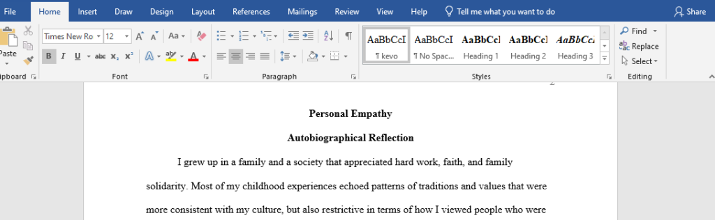 1) You will provide a brief autobiographical sketch that will allow you to practice